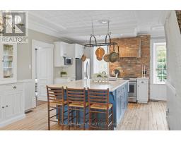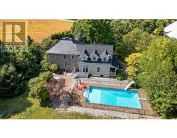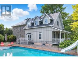 The journey begins the moment you turn down the tree-lined drive, where towering maples guide you toward the unforgettable Connell Residence. Set on 3.5 acres of scenic countryside just minutes from Spencerville, this breathtaking 5-bedroom + office/den and 3-bath stone home that balances heritage character with modern comfort. The wraparound verandahs, perennial hydrangea gardens, and views of rolling farmland set the tone for a property that feels timeless and inviting. Inside, refinished original hardwood floors (2025) and large windows bring warmth and natural light throughout. The foyer and mudroom offer plenty of practical storage, while the family room with exposed stone wall and woodstove (WETT Certified 2024) creates a cozy retreat with direct access to the backyard. A formal dining room anchored by a stone propane fireplace provides an elegant setting for gatherings, and the spacious kitchenwith brick accents, a copper sink, and a generous island becomes the natural hub of the home, flowing seamlessly onto the covered verandah. Upstairs, the primary suite is a true retreat with a sitting area, large closet, and private 3-piece ensuite. Three additional bedrooms plus an office or den share an updated 4-piece bath with a claw foot soaker tub and walk-in shower. The finished lower level extends the living space with a recreation room, a fifth bedroom, and ample storage. Outdoors, the property delivers resort-like living with meandering pathways, lush lawns, an inground pool with interlock patio and pool house, plus a two-level heritage barn and detached 2-car garage. Blending history, comfort, and opportunity, The Connell Residence is more than a home its a lifestyle. From hosting weddings and special events to creating a sought-after Airbnb retreat or enjoying a forever family estate, the possibilities are endless. Minutes from 416 HWY - 35 Min to the City of Ottawa. (id:61594)