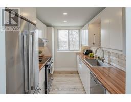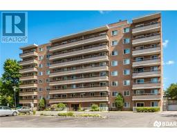 Welcome to Carriage Park condominium. Rarely offered renovated 3-bedroom, 2 bath suite. Kitchen upgrades include cabinets, stainless steel appliances, backsplash, countertops. Loads of counter space, deep stainless sink, faucets, food pantry, pot drawers, recessed pot lights and undermount cabinet lighting. Oversized living and dining room area with sliding glass doors out to an extra-large balcony with a view of Kempenfelt Bay. Spacious primary bedroom, 2nd and 3rd bedrooms provide ample space for guests, home office or tv room. Beautifully renovated main bathroom with walk-in shower, upgraded vanity and flooring. Convenient 2-piece guest bathroom off the 3rd bedroom. Neutral paint, upgraded flooring, modern lighting and large windows make this suite bright and cheery. Ductless split air conditioning keeps this home comfortable all summer long. Well kept building with dual elevators, upgraded common areas, bright clean common laundry area, large party room, underground parking plus visitor parking. Close to Johnson's beach, walking trails, located in the quiet east end of Barrie. Public transit steps from the front door, close to shopping, restaurants, and other amenities. (id:61594)