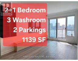 $681.29 MonthlyExperience refined living in this exceptional 1,139 sq. ft. 2 Bed + Den residence at Riverview Condos-bright, spacious, and thoughtfully designed. Enjoy floor-to-ceiling windows, soaring 9' ceilings, and a generous 334 sq. ft. west-facing wraparound balcony and 2 Parking Spots . The modern chef's kitchen features a quartz island, premium JennAir and Fisher & Paykel appliances, and sleek two-tone cabinetry. A rare 2-ensuite layout offers maximum privacy and convenience, with both bedrooms enjoying their own 3-piece bathrooms. The enclosed den, complete with French doors and a closet, can easily serve as a 3rd bedroom or a quiet home office. Upgrades include crown moulding, designer roller shades, and upscale fixtures throughout. Two parking spaces are included-an exceptional advantage in this building. Low condo fees cover heat, AC, and Rogers internet. Residents have access to top-tier amenities: 24/7 concierge, smart parcel system, fitness centre, business lounge, rooftop BBQ terrace, and more. Located within the highly ranked Unionville High School catchment and just steps to Whole Foods, LCBO, Downtown Markham, the GO Station, and major highways. (id:61594)