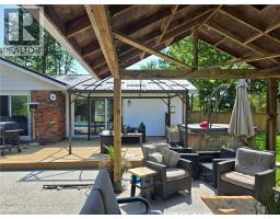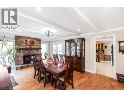 Turn-Key Luxury in the Country Welcome to an exceptional, sprawling ranch-style bungalow offering 2,150 sq. ft. of executive main-floor living. Situated on a private, beautifully treed lot in the desirable rural area of Dunnville, this home is loaded with high-end features and recent, significant upgrades, making it truly maintenance-free for years to come. This property is perfect for those seeking single-level living combined with resort-style outdoor amenities. Spacious Layout: Generous living spaces including 4 large bedrooms and a flexible den/office area. Cozy Warmth: Enjoy the ambiance and warmth provided by three strategically placed fireplaces (two gas, one gas store) throughout the main living areas. Recent Appliance Upgrades: The kitchen is ready for a chef with a New Refrigerator ('24), Electric Stove, and New Dishwasher ('25). Laundry features a New Washer ('23) and New Dryer ('25). Also includes a small chest freezer. Effortless Maintenance: All lights were changed to LED in 2020, and the furnace fan motor was replaced in '25. Finishing Touches: All curtains, light fixtures, and ceiling fans are included. Three windows were replaced in '22. Outdoor Oasis & Security Backyard Retreat: A fully fenced area centers around the large inground swimming pool (New Liner '24), complete with a modern filter system and heater (Pool Equipment '25). Tiki Zone: Entertain at the custom outdoor bar, featuring stools and tables (included). Generac Power: Never worry about power outages—the home is protected by a full GENERAC system (included). Hot Tub is included as is. Low-Maintenance Exterior: Features a durable Steel Roof (installed '20) with a leaf filter system on the eaves. Infrastructure & Mechanical Upgrades Water Quality'23Water filter system with UV protection Garage'25New Garage doors, lights, and Bluetooth openers HVAC'25New Furnace fan motor air exchange system Pool'24/'25New Pool Liner ('24), New Filter/Heater Equipment ('25) (id:61594)