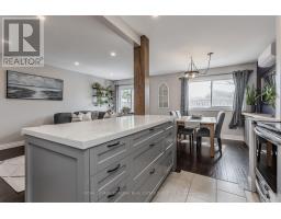 $432.88 MonthlyWelcome to this beautifully maintained townhouse condo, perfectly suited for growing families seeking comfort, style, and convenience. Nestled in a family-friendly neighbourhood just steps to everyday essentials and a short walk to the lake, this home offers the ideal blend of lifestyle and location. From the moment you arrive, the charming curb appeal sets the tone with a mature tree, interlock walkway, covered cedar wood porch-an inviting space to unwind, and new front door with premium retractable phantom screen (2019). The garage offers added convenience with bonus storage above. Inside, the main level showcases a bright, open-concept layout with wood/tile flooring throughout, skimmed ceiling and pot lights (2022) enhanced by smart switches. A welcoming foyer with wainscoting leads into the heart of the home. The fully renovated kitchen (2025) is a standout, featuring premium quartz countertops, centre island, custom cabinetry, subway tile backsplash, SS appliances, and a new Bosch dishwasher (2025), all accented by a warm white oak wood beam. The dining area includes a built-in credenza, while the living room offers a seamless walkout to the backyard-perfect for everyday living and entertaining. A convenient 2-piece powder room completes the main level. Upstairs, you'll find three generously sized bedrooms and a 4-piece main bathroom with an oversized vanity, providing plenty of space for the whole family. The fully finished lower level adds valuable living space with a spacious rec room, dedicated home office area, laundry, and ample storage area with built-in racks. Pot lights with smart switches are continued throughout. Step outside to a fully fenced backyard featuring a slate grey composite tile patio, awning, and green space for kids or pets to play. Additional perks include a fully updated HVAC system, with ductless units. A fantastic opportunity to enjoy turnkey living in a vibrant, family-oriented community close to shopping, parks, and more. (id:61594)