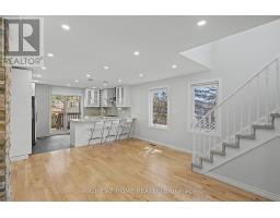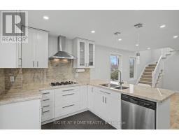 Welcome to this thoughtfully updated end-unit townhouse offering a highly practical layout, blending modern style with everyday functionality. Flooded with natural light, the open-concept main floor features a chef-inspired kitchen complete with a gas cooktop, granite countertops and backsplash, elegant finishes, flat ceilings, and pot lights throughout. A versatile main floor bedroom offers the perfect space for a home office if needed. The home has been freshly painted and includes a newer roof, oversized eavestroughs and downspouts, and a newer A/C. The upper level offers two generously sized bedrooms and two full bathrooms, including a walk-in custom closet. The layout is both functional and inviting, ideal for modern family living. Conveniently located close to schools, Richvale Community Centre and pool, and parks. A separate side entrance leads to a fully finished basement with its own laundry and a wet bar, perfect for extended family or income potential. Step outside to a private backyard framed by mature pine trees, complete with a shed for additional storage. Includes three parking spots. Move-in ready and thoughtfully upgraded, this home is a rare find. Seller does not warrant retrofit status of the basement. Some pictures are virtually staged. (id:61594)