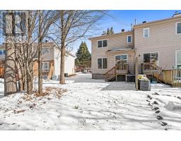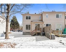 Located on a quiet, family-friendly crescent in sought-after Bridlewood, close to NCC trails, parks, the Eva James Community Centre, shopping, and everyday amenities, this bright 3 bedroom, 2.5 bathroom end unit townhome sits on an impressive ~130 ft deep lot and features stylish 2026 upgrades throughout. Freshly painted, the home offers a warm, welcoming feel from the moment you step inside, with a tiled foyer and convenient powder room leading into the sun-filled living room showcasing new hardwood floors (2026), a modern light fixture, and large windows overlooking the backyard. The dining room features a statement chandelier and patio door access to the deck, flowing seamlessly into a breakfast nook and beautifully updated kitchen with new quartz countertops (2026), tiled backsplash, white cabinetry, deep sink, pantry storage, and brand new stainless steel appliances, including a stove, fridge, and dishwasher (2026). The second level offers new carpet and a spacious primary retreat through grand double doors, complete with a walk-in closet and newly updated ensuite (2026) featuring a quartz countertop and new bathtub with tile surround. Two additional bright bedrooms and a full bathroom with tub/shower combo complete the level. The finished lower level adds valuable living space with new carpet, a cozy recreation room with gas fireplace, wood mantle and built-in shelving. Down the hall, you'll find a deep storage closet and a separate utility and laundry room with potential for future finishing. Outside, enjoy a sun-filled backyard with mature trees and the added benefit of side yard space, ideal for outdoor play, relaxing, and family enjoyment. A fantastic opportunity in a prime location, this is a move-in ready home you won't want to miss! 24 hours Irrevocable on all offers, preferred. Some rooms are virtually staged. (id:61594)