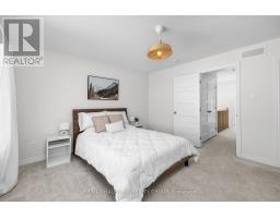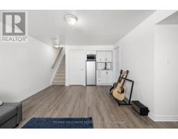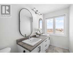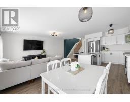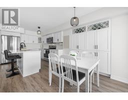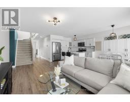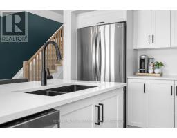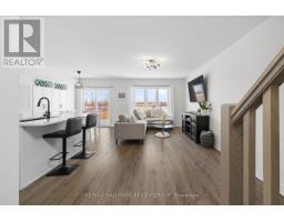 Welcome to this beautifully maintained 2022-built end-unit townhome offering exceptional privacy with no rear neighbours and no direct side neighbour. With 3 bedrooms, 2.5 bathrooms, and a finished basement, this home blends modern style with everyday functionality. The thoughtfully designed main level features an open-concept layout ideal for both entertaining and family living. The classic white kitchen is complemented by quartz countertops, black hardware, a spacious island with breakfast bar, and custom built-in pantry cabinetry for added storage and organization. Luxury vinyl flooring runs throughout the main level and continues into the finished basement for a cohesive and contemporary feel. Upstairs, the primary suite offers a relaxing retreat complete with a beautifully designed ensuite featuring a double sink vanity and a custom built-in walk-in closet. Two additional bedrooms, a full main bathroom, and convenient second-floor laundry complete the upper level. The finished basement expands your living space with a comfortable family room and a newly added wet bar-perfect for hosting guests or creating the ultimate movie-night setup. Located within walking distance to shops and restaurants, this home offers the perfect balance of privacy, style, and convenience-simply move in and enjoy. (id:61594)