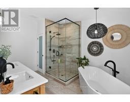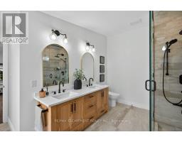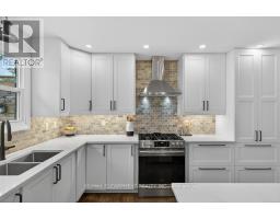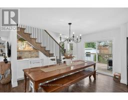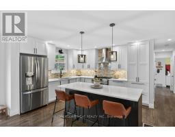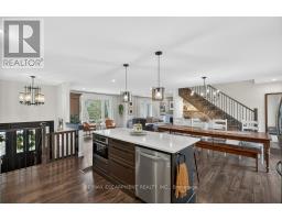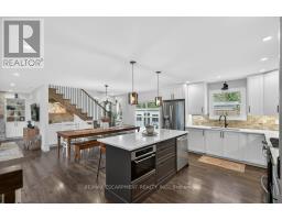 Absolutely stunning 4 bedroom plus den, 3.5 bathroom renovated home on a quiet dead end street in Waterdown's beautiful core! This is the home you have dreamed of! The gorgeous exterior finishes makes this home an absolute stand out! A large addition was completed in 2023 almost doubling the square footage of this home. The family and entertaining friendly open layout on the main floor features a beautiful kitchen with large island, quartz counters and stainless appliances. A large dining area with sliders to the rear yard and great room with gorgeous gas fireplace flanked by built-ins provide seamless flow for keeping an eye on the kids or staying engaged with guests while preparing a meal. A built-in coffee servery is another part of the incredible detail and thought put into this home! A main floor laundry and powder room area provides access to the rear yard. In the other end of the main floor you will find 3 bedrooms and a 4 piece bathroom. A hardwood staircase takes you to the absolutely incredible primary retreat! This one will take your breath away featuring vaulted and timber beam ceiling, french doors to a juliette balcony, an expansive walk-in closet with built-ins and a gorgeous ensuite with stand alone soaker tub, glass enclosed shower and a double custom vanity! The lower level is completely finished with a large family room, play area, workout space, large storage area, den and mudroom with built-ins with access to the attached garage. The spacious backyard has a large upper deck and a gorgeous stone patio with firepit. BONUS is a custom 10 x 12 outbuilding matching the home in finishes. It is insulated and has heating and cooling - ideal for a home office, he/she shed or workshop! This location can't be beat for those looking for a quiet spot to call home, yet conveniently located in the hub of it all, walking distance to schools, shops, restaurants, trails and Memorial Park. Homes like this rarely come along! (id:61594)