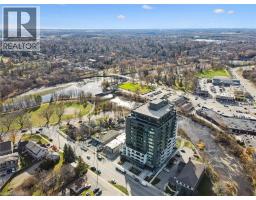 $784.39 MonthlyExperience elevated luxury at Edgewater Condominium, an exclusive residence perfectly positioned along the Eramosa River in the heart of Downtown Guelph. Welcome to Unit 608 - an exceptional 2-bedroom, 2-bath suite with 2 balconies that seamlessly combines modern sophistication with everyday comfort. Beautiful engineered hardwood flooring extends through the living spaces and bedrooms, complementing the gourmet kitchen featuring a spacious waterfall island, high-end appliances, sleek stone countertops, and a stylish backsplash. The open-concept layout flows effortlessly into the living and dining areas, anchored by a stunning floor-to-ceiling tiled fireplace and a walk-out to a private balcony offering sweeping city views.The primary suite provides a serene retreat with a walk-in closet, private balcony, and a spa-inspired 5-piece ensuite with a freestanding tub, glass shower, and heated floors. The second bedroom is conveniently located beside a chic 3-piece bath and in-suite laundry.Flooded with natural light through large windows and finished in calming neutral tones, this residence radiates warmth and sophistication. Additional features include one underground parking space, a storage locker, and access to luxury amenities such as a library, elegant party and media rooms, a state-of-the-art fitness centre, and guest suites.Enjoy the best of both worlds - the vibrancy of downtown living surrounded by boutique shops and fine dining, and the peaceful charm of riverfront trails and green spaces. With GO and VIA train access nearby, this is refined condo living at its finest. Experience the exceptional lifestyle only Edgewater can offer. (id:61594)
