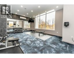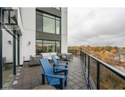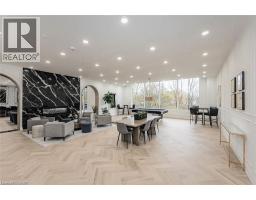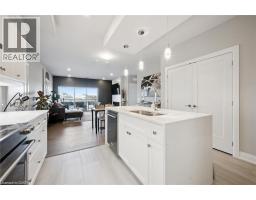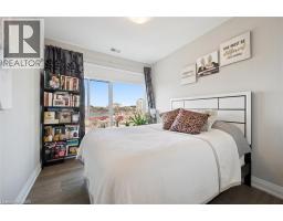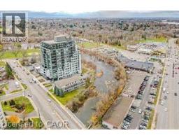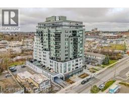 $784.39 MonthlyExperience refined condo living at Edgewater Condominium, ideally located along the Eramosa River in the heart of Downtown Guelph. Unit 608 is a well-appointed 2-bedroom, 2-bath suite offering two private balconies and a functional open-concept layout with approx. 1260 square feet of living space. Engineered hardwood flooring extends throughout the living areas and bedrooms. The kitchen features a waterfall island, stone countertops, modern backsplash, and premium appliances, opening to the living and dining areas highlighted by a floor-to-ceiling tiled fireplace and walk-out to a balcony with city views. The primary bedroom includes a walk-in closet, private balcony, and a 5-piece ensuite with freestanding tub, glass shower, and heated floors. A second bedroom, 3-piece bath, and in-suite laundry complete the suite. Large windows provide abundant natural light and neutral finishes throughout. Includes one underground parking space, one storage locker, and access to building amenities including a library, party and media rooms, fitness centre, and guest suites. Steps to downtown amenities, riverfront trails, and GO/VIA Rail access. (id:61594)
