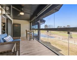 $380 Monthly**OPEN HOUSE SUNDAY APRIL 19TH 1-4PM** This home is a show stopper! A previous model home from when it was built in 2023, overlooking the golf course of Domaine du Golf in Rockland. Meticulously maintained featuring high end upgrades are sure to check the boxes. Entirely built with concrete assuring soundproofing, fireproof and energy efficiency with radiant floor heating. The upper middle unit Birdie model by Clement Homes offers scenic views, open concept 1050 Sqft , cathedral ceilings, with an enclosed 3 season balcony with retractable panoramic windows (20'x7') along with storage closet (2'6"x7'0"). Pot lights and upgraded light fixtures. This unit is truly one of its kind with 2 bedrooms and 2 FULL bathrooms all on one level! The kitchen offers an extended quartz waterfall island with ample cabinet space, ceramic backsplash and stainless steel appliances. The bathrooms are sizable with plenty of cabinets one with an inviting soaker tub while also housing the washer and dryer the other with a large shower. The floor plan offers separation from the bedrooms and living space. This unit also comes with underground heated parking and storage locker (7' x 11'). Rockland offers an abundance of amenities including shops, Homesense, Walmart, Restaurants, Marina and Recreation. Better yet, grab your Golf clubs and step outside your door! (id:61594)