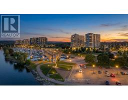Welcome to one of Barrie's most sought-after waterfront residences, perfectly positioned across from Kempenfelt Bay and steps to the marina, Centennial Beach, scenic waterfront trails, parks, and year-round recreation. Enjoy the best of downtown living with shopping, dining, patios, and entertainment just a short stroll away, while commuters will appreciate easy access to Highway 400, the Allandale Waterfront GO Station, and public transit. This 2-bedroom, 2-bathroom suite with a large den offers a bright and functional layout designed for comfort and flexibility. Natural light fills the open-concept living, dining, and kitchen space, flowing seamlessly to a private balcony where bay views create the perfect backdrop for morning coffee or evening relaxation. The spacious den provides an ideal home office, reading nook, or additional living space. The primary bedroom features generous closet space and a private ensuite, while the second bedroom and full bathroom offer comfort for guests or family. In-suite laundry adds everyday convenience. Freshly updated and move in ready, 2024 upgrades include new carpet, new paint throughout the unit, new light fixtures, new faucets, new doorknobs and hinges throughout, new cabinet knobs in kitchen and in bathrooms, new towel bars, and new kitchen backsplash. Residents enjoy a full suite of premium amenities, including an indoor pool, sauna, hot tub, fitness centre, party/games room, guest suites, visitor parking, and more. Underground parking and a storage locker complete this exceptional offering. A rare opportunity to enjoy waterfront scenery, downtown energy, and resort-style living in one unforgettable setting. (id:61594)