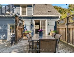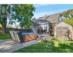 Welcome to this beautifully maintained 3-bedroom, 2.5-bath carpet-free home ideally located in one of Burlington's most desirable downtown neighbourhoods. Just steps from the lake, Spencer Smith Park, and a vibrant array of restaurants, cafes, and shops, this property offers the perfect blend of charm, character, and convenience. Step onto the spacious covered front porch and into a warm, open-concept main floor that's ideal for both relaxing and entertaining. The updated kitchen features stainless steel appliances, a gas stove, and a large peninsula with seating. The exposed brick chimney, original hardwood floors, California shutters, and gas fireplace in the living room create a cozy yet stylish atmosphere. The generous dining area comfortably fits a large table and opens via double doors to the backyard deck, perfect for indoor/outdoor living. Upstairs, you'll find two bright bedrooms with built-in cabinets and a renovated 4-piece bath. The finished basement includes a spacious primary bedroom, a comfortable rec room/living area, and a bathroom with a walk-in shower - ideal for guests or as a private retreat. The private backyard is your personal oasis, complete with mature trees, a wooden deck, a hot tub, and a new shed for extra storage. Recent upgrades include: Furnace (Dec 2020); A/C (2021); Exterior paint (2021); Dishwasher (2022); Powder room (2023); Shed (2023); Hot tub cover (2025). Don't miss this rare opportunity to live in a charming, character-filled home in downtown Burlington - where you're never far from the lake, green space, and city amenities. Book your private showing today! (id:61594)