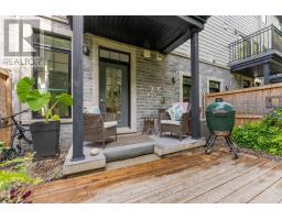 Luxurious Custom Townhome in the Heart of Stittsville. Discover this beautifully appointed, meticulously maintained 2-bedroom, 3-bath townhome, ideally located in a quiet enclave backing onto mature trees and greenery. Just steps from Stittsville Main Street shops, cafés, and restaurants, with easy access to transit and the Trans Canada Trail-perfect for cycling, jogging, or leisurely walks. Enjoy the convenience of being walking distance to Village Square Park, home to local festivals and community events.Offering over 1,522 sq. ft. of bright, elegant living space, this home features newly refinished hardwood floors, a striking hardwood staircase, and a spacious foyer with access to a private, fully fenced backyard oasis. Beautifully landscaped gardens and a deck provide the perfect setting for entertaining, barbecuing, or relaxing outdoors. Two additional European-style balconies extend your living space-one off the kitchen with a pergola and another off the living/dining area-ideal for morning coffee or sunset dining.The second level impresses with lofty ceilings and an abundance of natural light. The gourmet kitchen boasts quartz countertops, a large island, upgraded cabinetry, and stainless steel appliances. The third level features two spacious bedrooms, including a freshly painted primary suite and a versatile second bedroom with a Murphy bed. A convenient laundry closet and two full bathrooms complete this level, including a modern 3-piece ensuite with a custom walk-in shower.The lower level offers generous storage and a partially finished area, perfect for a gym or home office.Monthly Association Fee: $120.18, covering snow removal, private road maintenance, landscaping, street lighting, and fencing.Experience sophisticated living in one of Stittsville's most desirable locations-move-in ready and waiting for you! Open House- Sunday , November 16 2-4 PM. (id:61594)