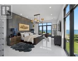 A rare offering on the shores of Lake Ontario, 711 Beach Blvd is a striking, custom-built residence completed in 2020, offering over 6,700 sq ft of total living space across three levels. Situated directly on the Waterfront Trail- 10 km of lakefront maintained by the City of Hamilton- this property boasts panoramic water views, total privacy, and direct access to the beach. With a 56' frontage that widens to 72' along the lakeside, and a professionally landscaped lot with multiple outdoor terraces, this is coastal living at its most refined. The home is a masterclass in design and craftsmanship, with 10' ceilings, Architectural Series Pella windows & doors, four Duradeck-covered terraces & an elegant stucco façade. Inside, high-end finishes abound: from custom millwork & Emtek marble hardware to Visual Comfort chandeliers, Swarovski accents & hand-cut marble inlays. The main floor is anchored by a dramatic two-storey foyer and a showstopping kitchen with commercial-grade appliances, grand Caesarstone island, built-in desk/office area & a bespoke bar & coffee room. The upper level features three bedrooms, each with an ensuite bath, including a luxurious primary retreat with a double-sided fireplace, lake views, and a spa-style bath with a huge gold soaker tub & an incredible double vanity. The lower level includes two additional bedrooms/offices, a large recreation/media room, a gym area & abundant storage. With a Jacuzzi swim spa, double garage with lift potential & outdoor parking for 5, this is a one-of-a-kind beachside sanctuary designed for elevated everyday living. (id:61594)
