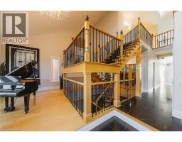 Unique, custom-built luxury home offering just over 5000 sq ft of Finished Living Space. Attention to detail & fine construction throughout, this home offers elegance, comfort, & functionality. Step into the grand sitting area, featuring soaring ceilings, stunning windows, & an impressive open staircase that connects all levels of the home. Sunken dining room boasts coffered gold leafing ceilings for refined entertaining. Custom Built Downsview kitchen offers abundant cabinetry, granite countertops, & top-of-the-line stainless steel appliances, including a Sub-Zero refrigerator, Wolf gas range, Gaggenau built-in oven, Miele dishwasher, & microwave storage. Relax or entertain in the expansive great room, featuring dramatic ceiling heights & a backlit onyx walls for your tv. An open-concept office with natural light, perfect workspace. Main-floor laundry room includes garage access. Upstairs, the spacious primary suite offers a large walk-in closet & a renovated 5-piece ensuite (2025). Two generous bedrooms share a beautifully appointed 4-piece bathroom, & a bright loft area overlooks both the front & rear of the home. The lower level features large windows & offers in-law suite potential with separate walk-ups to both the rear yard & garage. Cozy recreation room with fireplace, a fully equipped gym, a sauna for relaxation, 3 pc bath (2025), workshop, cold room, & plenty of storage space. The outdoor oasis includes a composite deck with built-in BBQ, hot tub, & an oversized waterfall feature with fireplace, artificial turf & a storage shed. Additional highlights include an oversized 2-car garage with abundant storage & a long interlock driveway accommodating up to 8 vehicles & irrigation system. Trillium award several years for landscaping. Ideally located near Tiffany Falls, Tamahaac Club, Highway 403, the Linc, Costco, schools, parks, & trails, luxury living with convenience & lifestyle. (id:61594)