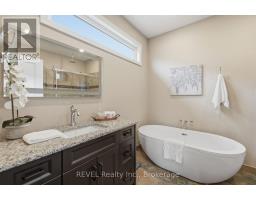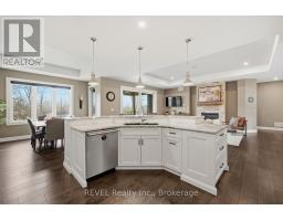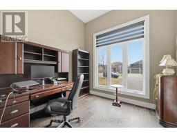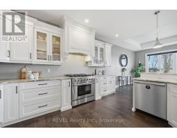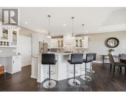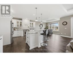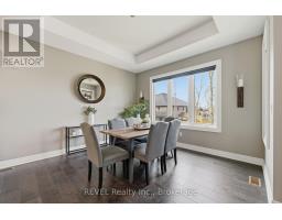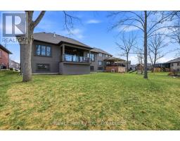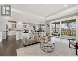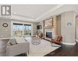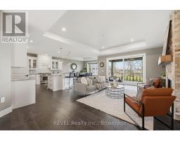 Beautifully crafted raised bungalow built in 2019, thoughtfully designed by the original owners with quality finishes and comfortable living in mind. The bright main floor features engineered hardwood flooring and a spacious open-concept layout ideal for entertaining, complete with a cozy gas fireplace and a dedicated dining area. Large windows and impressive 10-ft sliding doors fill the space with natural light and open to the patio overlooking scenic quarry views. The kitchen offers both style and function with granite countertops, a large island with seating, gas range, stainless steel appliances, white shaker cabinetry, a tray ceiling detail, and a convenient walk-in pantry. Main floor laundry and interior access from the double car garage provide everyday convenience, with a bonus storage loft above the garage.The primary bedroom suite includes double closet space along with a relaxing ensuite featuring a soaker tub and separate walk-in shower. A private office just off the foyer provides an ideal setup for those working from home or welcoming clients.The fully finished raised lower level offers abundant natural light, a spacious family room, three additional bedrooms, and a four-piece bathroom-perfect for guests or a growing family. Storage is plentiful throughout the home, including a handy roll-up storage area located beneath the front porch for lawn and garden equipment.Located in one of Port Colborne's most sought-after neighbourhoods, this home is just a short walk to parks, schools, and the charming downtown core. (id:61594)
