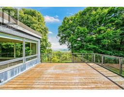 Stunning Frank Lloyd Wright - Inspired Estate with Sweeping Escarpment Views! Perched on the crest of the Niagara Escarpment, this remarkable 3.7 acre estate offers rare privacy, timeless, design and a seamless connection to nature - all just minutes from local conveniences. Blending classic craftsmanship with modern sophistication, the home showcases rich hardwood and natural stone flooring, custom millwork, soaring coffered ceilings and refined crown mouldings. Expansive floor-to-ceilings windows capture breathtaking, unobstructed views, filling every room with natural light. The open- concept design is ideal for both intimate living and grand entertaining, with flowing sightlines from the Great room to the formal dining area and chef's kitchen. Multiple glass-railed terraces extend the living space outdoor, where the escarpment's four-season beauty provides an ever-changing backdrop. Each room has been thoughtfully curated to evoke calm and harmony, offering a true retreat from the demands of daily life. For the equestrian enthusiasts, the property features a manicured paddock with oak fencing and a custom built horse shelter. Outdoor lovers will enjoy direct access to nearby Rattlesnake Point Conservation Area perfect for hiking and exploring nature. This estate is more than a residence - it is a lifestyle defined by beauty, balance and refined country living! ATTENTION BUILDERS: Property has conditional approval for development from the Niagara Escarpment Commission. (id:61594)