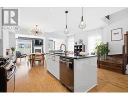 Welcome to Richcraft's largest townhome model, featuring hardwood on both the main and second levels, 3 bedrooms plus den upstairs, and a private driveway with interlock for side by side parking. Step inside from the covered porch into a bright, open concept main floor with high ceilings and large windows that fill the space with natural light. The two-toned kitchen features quartz countertops, black stainless-steel appliances, a gas range, pendant lighting, which flows seamlessly into the dining area and living room where a gas fireplace adds warmth and character. A patio door leads to the fully fenced backyard with widened back steps leading to the interlock patio, designed for easy, low maintenance outdoor living. Upstairs, the spacious primary bedroom includes a walk-in closet and a 4-piece ensuite. Two additional bedrooms, a full bathroom, a versatile den, and second floor laundry completes the level. The finished basement extends your living space with a recreation room and additional storage. Ideally located close to parks, schools, shopping, and transit, this home offers a great balance of space, function, and convenience. (id:61594)