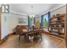 Find peace along the shores of the St. Lawrence. Own this beautiful Edwardian style home with remarkable curb appeal in Morrisburg, where Ontario began! Located on a corner lot in a truly special part of town, turn back the clock as you climb the front steps. Feel tensions and time melt away while sipping coffee on the front porch. Inside, the ambience is warm and inviting. Appreciate the well preserved 1920s design features- 9' curved ceilings, 10" wooden baseboards, beautiful wooden flooring, doors, and window frames. Spacious living and dining rooms receive ample sunlight from many large windows, and are separated by fabulous French doors. The updated kitchen with additional eating area is in the rear, with another large window overlooking the back garden and pergola. Main level also has convenient work space + full bathroom with new shower. Ascend gorgeous wooden stairs to the 2nd floor (also with 9' ceilings) to find 3 good-sized bedrooms and 2nd full bathroom, with shower and classic clawfoot tub. The 2nd level sunroom is a great bonus flex room, with windows on 3 sides creating the perfect spot to catch a glimpse of the river or get lost in a book. Outside, front and back yards showcase colourful perennial flowerbeds and a variety of mature trees for privacy while listening to the birds or hosting garden parties. Since 2020 the home has seen many important improvements including R60 attic insulation and updates to structure + resurfaced 2nd level floor of detached garage. Full list of updates in attachments. In the midst of revitalization and growth, enjoy a serene lifestyle balanced with the benefits of a growing community. Minutes to the best parts of town, major routes, scenic drives, and less than an hour to Ottawa. (id:61594)
