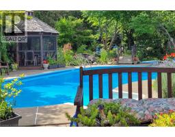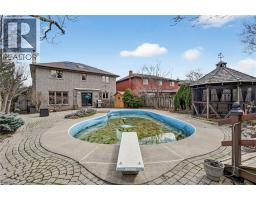 Rare 215-foot deep ravine lot with a private backyard oasis in a sought-after Hamilton location. This beautifully maintained 4-bedroom home is set on one of the largest lots in the neighbourhood, offering exceptional privacy with lush, forested views and no rear neighbours—a truly special find in the city. Inside, elegant hardwood floors complement a spacious, well-designed layout ideal for comfortable family living and entertaining, while the finished basement provides additional living space and ample storage. The backyard is a true retreat, featuring an inground pool, expansive interlock patio, and a screened-in gazebo—perfect for summer gatherings or quiet moments surrounded by nature. Thoughtfully landscaped gardens and mature trees enhance the sense of tranquility throughout. Additional highlights include a 2-car garage, 4-car interlock driveway, pool equipment shed, large garden shed, and gated access to the ravine. Located just steps from a large park and close to schools, transit, and everyday amenities, this home offers a rare blend of privacy, space, and convenience. A unique opportunity to own a premium ravine property with exceptional outdoor living. (id:61594)