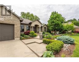 Simply stunning executive style home/property located in one of Simcoe's most prestigious, upscale neighborhoods abutting the manicured fairways of revered Norfolk Golf Course - rarely do one of 13 properties backing on to this stately course ever come available. Offers close proximity to many amenities incs Hospital, schools, rec centers, pools, trails, shopping & eateries. Positioned proudly on .36ac lushly landscaped lot is 2006 custom built/signaged stone/brick/stucco clad Estate bungalow introducing 2483sf of flawless living area incs 420sf covered outdoor entertainment area overlooking golf course grounds - boasting tile floors, gas FP, TV, outdoor kitchen & huge dining area, 2483sf beautifully finished lower level & 655sf oversized 2-car garage enjoying basement walk-down. Grand foyer leads past formal dining room to open conc. "Dream" kitchen sporting maple cabinetry, designer island, granite counters, tile backsplash, WI pantry & hi-end appliances incs Sub-Zero refrigerated drawer feature - segues to comfortable family room ftrs stylish wall unit, n/g FP + 8ft high 3 panel sliding door WO. Continues to opulent living room w/2nd patio door WO, roomy guest bedroom, 4pc bath, convenient MF laundry & north-wing primary bedroom incs 4pc jacuzzi en-suite + WI closet. Gleaming hardwood floors, gorgeous wood trim/baseboard, 9ft/10ft valence lighted tray ceilings + heated tile flooring compliment interior décor w/sophisticated flair. Impressive rec/family room highlights lower level boasting 9ft ceilings, gas FP & corion top rectangular shaped wet bar - seamlessly flowing to sizable 3rd bedroom, home gym/poss. 4th bedroom, 3pc bath, spacious games room & multiple utility + cold rooms. Extras - Control "4" security, owned water well supplying multi-zone irrigation system, all appliances, RO purification, water softener, AC, 19, 200 amp hydro, conc. drive/walkways, extensive outdoor lighting, 8 TVs, Golf Cart & much more. Luxurious Life-style waiting "FORE" You! (id:61594)