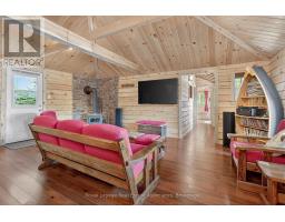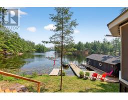 WATER ACCESS PROPERTY. Get ready to start living the dream this summer! This family getaway offers a lovely view of the water from all rooms. A 3 season bright & cheery waterfront cottage with 2+1 bedrooms, 3 pc bath, washer/dryer, vaulted ceilings in every room, a wood stove, a stunning Muskoka Room with windows that raise up to allow a screened room, docking space with a boat lift and a boathouse with a single slip! Recently renovated with addition in 2016, it features an open concept floor plan, gorgeous wood interior features, heat and air conditioning, and board and batten exterior. Sitting on this beautiful treed lot that is just under an acre with crown land on oneside and behind. Enjoy the benefits of a quiet bay while still being able to watch the boats from all over the world go by on the Trent system. The kids will love the shallow water entry and its all only a ten minute boat ride away from Big Chute Marina, just 20 minutes to Waubaushene for shopping, and 30-40 mins to Midland or Port Carling. For year round access, this cottage is also accessible by the hiking trail leading to the back of the property. So whether you want to enjoy boating down the Trent Severn, or just sitting back reading a book, this cottage has everything that you will ever need in a home away from home. This property won't disappoint! (id:61594)