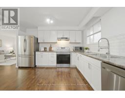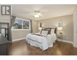 Set on a quiet street in Milton's established Timberlea community, this spacious 3+1 bedroom backsplit offers a layout that truly supports family living. With approximately 1,860 sq. ft. above grade plus a fully finished lower level with its own entrance, the home provides flexibility for multi-generational living, extended stays, or simply more room to spread out. The main floor features a bright combined living and dining area and an eat-in kitchen with stainless-steel appliances and hardwood flooring that continues through the principal living spaces. Upstairs, you'll find three bedrooms, including a spacious primary bedroom with a 5-piece semi-ensuite and a separate adjoining vanity area that provides added privacy and works well for shared morning routines. A few steps down from the main floor, the ground-level family room is accessed through French doors and opens directly to the backyard through sliding doors, creating an easy indoor-outdoor flow. This level also includes a dedicated home office, a full 4-piece bathroom, and a laundry room with direct yard access. The fully finished lower level is ideal for independent living or entertaining, featuring a generous recreation area with a gas fireplace, a full kitchen with granite counters and an island, and a private fourth bedroom with a sliding barn door. Tile flooring is found in the kitchen and bathroom, with laminate in the adjoining living spaces. The backyard is designed for low-maintenance enjoyment with high-end artificial turf, a shed, gas BBQ hookup, and a concrete pad with two gazebos. Parking is abundant with a 4-car driveway and a 2-car attached garage. The sellers have especially loved the family-friendly feel of the neighbourhood -- with parks, schools, shops, and everyday conveniences all just a short walk or drive away. *Note - Home Linked Below Grade* ** This is a linked property.** (id:61594)