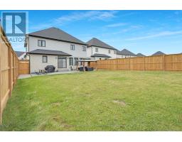 Welcome to Silver Leaf Estates! Located in southwest London, this prestigious community offers easy access to Highway 401/402 and a variety of grocery stores, dining options, GoodLife Fitness, and picturesque walking trails. Introducing 7251 Silver Creek, a refined residence ideal for families. This home features 4 bedrooms, 3.5 bathrooms, and 2,993 sq. ft. of above-grade living space, all enhanced by soaring ceilings. Enter through grand double doors to exquisite engineered hardwood floors. To the right, a sophisticated office awaits, perfect for remote work. The elegant hallway leads to a dedicated dining room that connects to a stunning kitchen, complete with quartz countertops, a beautiful backsplash, and a waterfall island ideal for casual dining. Designed for the discerning chef, the kitchen boasts ceiling-height cabinetry, a spacious double-door refrigerator, and a pantry with a coffee bar. Adjacent to the kitchen, the cozy eating area overlooks the expansive great room, featuring a ceramic-framed fireplace ideal for relaxation and gatherings. Upstairs, discover two spacious bedrooms connected by a stylish 5-piece Jack & Jill bathroom, plus a second ensuite with a full bathroom and walk-in closet for added privacy. The primary suite is a true sanctuary, showcasing a luxurious 5-piece ensuite with a separate soaker tub, glass shower, and elegant black hardware. Recently landscaped and fully fenced, the property features a substantial concrete pad and a stylish sidewalk leading to the front. With a remarkable lot length of 146.97 ft on one side and 134.16 ft on the other, the expansive yard offers endless outdoor possibilities. Don't miss your chance to experience this exquisite home. Schedule your private showing today and discover the unmatched lifestyle at Silver Leaf Estates! (id:61594)