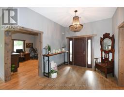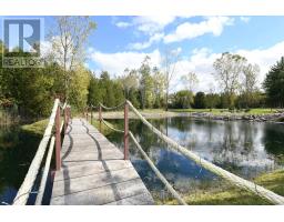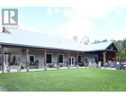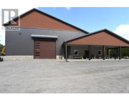 Hideaway on Ridge: A Custom built Barndominium on 48 incredible acres. Thoughtfully designed as an executive multi-generational or two-family residence with uncompromising finishes. The exterior boasts an impressive wraparound porch with an outdoor kitchen and entertainment area. Timeless stone and metal exterior gracefully frame the property, offering a serene fusion of beauty and substance. The main level of this residence features a timeless, open concept 3 bedroom layout,10-foot ceilings, traditional decor and a gorgeous chefs kitchen with sleek white cabinetry and a feature beverage station. Beautiful Italian imported tile floors span the principal rooms & bedrooms. Enjoy the ambiance of a two-sided stone & shiplap fireplace separating the living room from the media room. Modern country-inspired washrooms offer minimalism and beauty. Quiet den/office or 3rd bedroom evolving with your needs. A self contained residential unit above the garage boasts 10-footceilings & large sunlit windows, extending primary living or creating a secondary residence offering 2 bedrooms, a 4pc bath, eat-in kitchen, open concept living area and a walk-out composite deck overlooking the property. A massive garage with in-floor heat and 200amp service ensures ample parking for vehicles and toys. There is also a separate Bunkie home on site with 1 bedroom, 1 bath and a full kitchen for extended family, guests or as a rental unit. Geothermal heat, solar income and so much more...A Must-See. (id:61594)