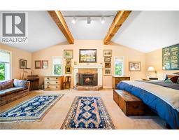 For the first time in over 35 years, a truly exceptional opportunity presents itself: 98 acres of diverse, breathtaking land located just outside the picturesque village of Elora. This truly one-of-a-kind property combines 68 acres of productive farmland with 28 acres of unspoiled natural landscape, including over 2,300 ft of road frontage and over 2,700 ft of water frontage on the Grand River. Private trails wind through the woods down to and along the banks of the Grand River, perfect for peaceful walks or immersive nature experiences. Only minutes away, the Elora Conservation Area offers even more ways to enjoy the area's stunning landscapes and outdoor adventures. At the heart of the property stands a charming 4-bedroom post-and-beam farmhouse, originally built in the 1850s. Thoughtfully updated over the years, the home balances timeless character with modern comfort. The residence is set well back from the road, ensuring complete privacy. Additional features include a bank barn (50' x 100'), storage barn (attached to bank barn, 25' x 70'), detached triple car garage/shop (30' x 50'), storage barn (30' x 50'), and milk shed (15' x 17'). Steps from the covered porch of the main house is a tranquil swimming pond, including a sandy beach area and patio, perfect for summer afternoons or evening sunsets. Whether you're looking to build your dream estate, or simply enjoy one of Ontario’s most scenic properties, don’t miss this once-in-a-lifetime opportunity. (id:61594)