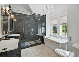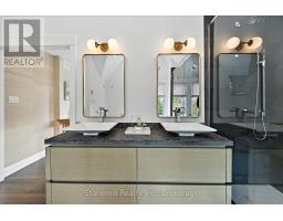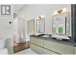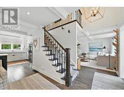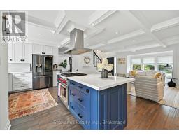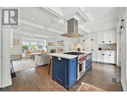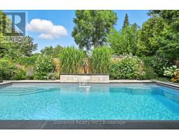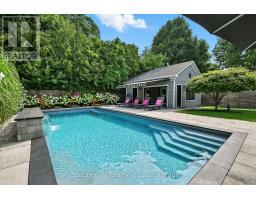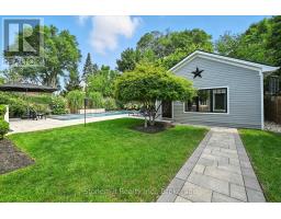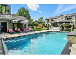Nestled on a 63' X 136' lot in the heart of downtown Burlington, this stunning custom home showcases superior craftsmanship and an impeccable attention to detail throughout. The main floor presents an open-concept design, featuring coffered ceilings illuminated with LED pot lights, hand-scribed 8 inch plank hardwood floors and elegant solid wood custom millwork. The gourmet kitchen boasts premium S/S appliances, quartz countertops, a bold blue center island and a wall pantry that includes a convenient coffee bar setup. Expansive custom French doors in both the kitchen and dining area provide direct access to an exceptional covered back deck complete with a sunken hot tub, extensive decking and a generous staircase leading to the beautifully manicured lawn. Adding an inviting touch, the separate family room is complemented by a cozy fireplace. The Upper level is anchored by an opulent master retreat and offers a spa-inspired 5 piece ensuite with a stand-alone soaker tub, dual sinks, and an oversized glass enclosed shower. The suite is further enhanced by a fully fitted dressing room complete with a makeup vanity and tailored cabinetry. Three additional bedrooms (one presently used as an office) and a stylish 4 piece bath complete the upper floor. The lower level offers a bright and spacious recreation space, ideal for family movie nights, a 2 pc. bath and a fully finished laundry area complete with granite countertops and ample storage.The custom deck offers space for BBQ's and a cozy soak in the Hot Tub. The professionally landscaped garden incl. a heated pool c/w waterfall & boasts extensive flower and vegetable offerings. Also the garden features a stunning studio/nanny suite offering a 3 pc.bath, full kitchen, elegant sitting room c/w with heated floors & A/C. This stylish suite doubles as a pool house, home office, gym or a private guest suite. This home is not to be missed if you are looking for elegance and convenience to downtown Burlington. (id:61594)