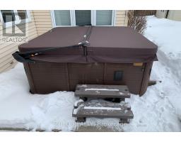 Excellent location with ideal distance from and access to highway 174 for commuting. Walking distance to shops, parks and schools. Main floor private office and main floor laundry. Step into the grand foyer featuring a retiled bi-colour entrance (2020). Beautiful hardwood floors and porcelain tiles on main and second levels. Immediately striking is the unique winding staircase, centrally positioned, with mixed metal and wood balusters. To the right, the formal living/piano room is painted in a bold, vibrant red with a large bay window and ample space for entertaining. To the left, elegant french-doors open into a spacious formal dining room complete with pot lights and a statement light fixture. Main floor private office & main floor laundry. The kitchen features oak cabinetry with pots and pan drawers, under-cabinet lighting, & granite countertops. All kitchen appliances were replaced in 2020. At the rear of the home, enjoy the stunning two-story family room highlighted by a newer gas fireplace (2020), a modern remote-controlled light/ceiling fan, and four large windows fitted with new blinds (2024). Roof re-shingled in 2019. Upstairs, the spacious primary bedroom offers an ensuite bathroom and a California-style walk-in closet with built-in drawers and shelving. Three additional generous bedrooms and a full main bathroom complete the upper level. The basement provides a finished recreation room with a built-in bar, a crafting room that could also serve as a fifth bedroom, plus a large storage area and workshop. Relax and entertain in your private backyard oasis featuring an in-ground heated saltwater pool and a hot tub, that have been very well maintained with key components replaced recently surrounded by stamped concrete. Double attached garage with new garage door. (id:61594)