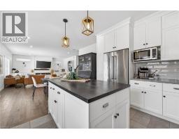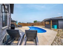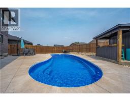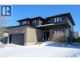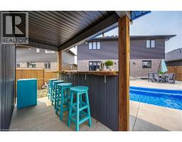 74 Farley: Where Custom Craftsmanship Meets Resort-Style Living. Experience the perfect blend of luxury and comfort in this meticulously maintained 2018 custom home by renowned builder James Keating. Thoughtfully crafted with timeless design and high-end finishes, this residence is an entertainer’s dream, boasting over 3500 sq ft of living space, offering five spacious bedrooms and four bathrooms across a refined, open-concept floor plan. The main level makes a grand impression with soaring 9-foot ceilings and rich hardwood flooring. At its heart lies a chef’s kitchen featuring quartz countertops, premium appliances, and a custom gathering island that flows seamlessly into a family room anchored by a stunning feature wall. For those working from home, the separate dining room doubles as a sophisticated executive office. The elegance continues upstairs with four generous bedrooms, including a primary retreat featuring a walk-in closet and a newly updated spa-inspired ensuite. The lower level extends the living space further with a professionally finished basement, complete with a custom wet bar, large rec room, and an additional bedroom with an egress window. Step outside into your private backyard oasis. Whether hosting summer soirées or enjoying quiet evenings, the heated saltwater pool and charming cabana create a vacation-at-home atmosphere. Located in a premier Fergus neighborhood, you are moments from top-tier schools, parks, and charming local amenities. (id:61594)