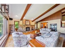 Welcome to Miramichi Bay Road Saugeen Shores! This magnificent side split home sits directly on Miramichi Bay, with panoramic views of Lake Huron from multiple sides. This home was built for entertaining with up to 5 bedrooms, multiple eating areas and outdoor spaces. The approximately one third of an acre property is beautifully landscaped with mature trees and perennials, interlock driveway with ample parking, concrete walk ways, steps and retaining walls. This home features an inviting two story front entry with large foyer open to a spacious vaulted great room, featuring a stunning wall to wall stone wood burning fireplace. This spectacular room is accented with custom wood beams, solid oak floors and other mill work. The formal dining room between the great room and kitchen allows for easy family gatherings in all seasons. The full kitchen includes an eating area that comfortably seats six and exits directly onto the large covered porch with panoramic lake views. This area has always been the heart of the home. The upper floor features three bedrooms and a large bathroom. One of the bedrooms features a kids bunky for sleepovers. The cozy lower level features a family room with wood stove and two guest bedrooms on ground level above grade, one with ensuite bath. There is a huge wood deck over the double garage with magnificent lake views where you can take in this area's renowned magical sunsets. This home was built to exacting standards, and is heavily insulated to survive the harshest weather to ensure you can enjoy living here year round. There are many trails to hike in the woods directly behind the home as well as the lake trail that runs along the shoreline directly in the front of the house. Port Elgin, Southampton, grocery, shopping, marina and community centres near by. Wonderful year round living. (id:61594)