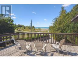Welcome to Miramichi Bay Road Saugeen Shores! This magnificent side split sits directly on Miramichi Bay, with panoramic views of Lake Huron from multiple sides. Built with entertaining in mind this home offers 5 bedrooms, multiple eating areas and outdoor spaces. Approximately 1/3 of acre, beautifully landscaped with mature trees and perennials, interlock driveway with ample parking, concrete walk ways, steps and retaining walls. This home features a two story front entry with a large foyer open to a spacious vaulted great room, featuring a stunning wall to wall stone wood burning fireplace with insert.This room is accented with spectacular wood beams, solid oak floors and other mill work throughout. The formal dining room located between the great room and kitchen allows for easy family gatherings in all seasons. The full kitchen includes a breakfast area that exists directly onto the large covered porch with panoramic views of the lake! This has always been the heart of the home. The upper level features 3 bedrooms and large bathroom. One bedroom has a kid's "bunky" excellent for sleep overs! The cozy lower level features a cozy family room with wood stove, 2 additional bedrooms with ensuite, a large mudroom with access to garage, storage and bonus room. A huge deck has been built over the garage for a wonderful view of the lake and it's magical sunsets! This home was built to exacting standards, and is heavily insulated to survive the harshest weather conditions, to ensure to enjoy living year around. There are many trails to hike in the woods directly behind the home as well as the lake trail that runs along the shoreline directly in front of the house. Port Elgin, Southhampton, close to all amenities, marina and communty centres near by. Wonderful year round living at it's best. (id:61594)