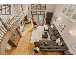 This is the kind of home people wait years for-quietly set along one of Hamilton's most distinguished streets, set on an oversized, double-width lot and framed by an exceptional natural backdrop. With the Royal Botanical Gardens quite literally at your doorstep, you're surrounded by lush forest, winding trails, and the beauty of Cootes Paradise just moments away.The home itself strikes a rare balance between character and contemporary comfort.Original details have been preserved and elevated, while thoughtful renovations have introduced a striking layout designed for modern living.At the centre of it all is a beautifully appointed kitchen with granite finishes, effortlessly connecting to an expansive family room where the dramatic ceiling height and curved wall creates a true sense of space and light.The main living areas feel both refined and welcoming, with detailed millwork, rich hardwood floors, and a statement fireplace anchoring the space.One of the home's most distinctive touches is the elevated library-an architectural feature that adds both character and function, overlooking the family room below.Upstairs, the bedrooms are generously proportioned and filled with natural light.The primary suite offers a walk-through w/i closet that opens to a spa-like ensuite, making everyday living feel effortless.The lower level has been fully finished with versatility in mind, offering an entertainment lounge, additional bedroom, full bathroom with in-floor heating, and a separate exercise area-ideal for growing families or hosting guests.Parking is never a concern here, with a wide driveway accommodating multiple vehicles in addition to a dble garage.All of this is set within the vibrant Westdale community, where excellent schools, McMaster University, and a charming village filled with cafés, dining spots, and everyday amenities,all within walking distance.It's a lifestyle location that's as connected as it is serene.Some photos virtually enhanced. Luxury Certified (id:61594)