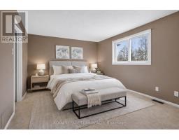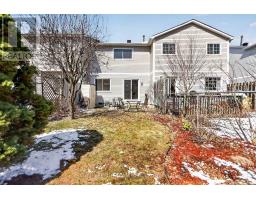 Welcome to this lovely 3 bedroom, 2 bath townhome, perfect for first-time buyers & those looking to rightsize. Located in the family friendly neighborhood of Bridlewood in Kanata South. Enjoy the deep fenced south facing backyard with no rear neighbors. Access to the Trans Canada Trail & Laura Dubois Park is a short walk down the street. Interlock walkway leads you to the covered front porch, great for a morning coffee & greeting guests. Incredibly roomy foyer, has tiled floors & a double closet, convenient for families. Renovated powder room is steps away & has a modern vanity, mirror & light fixture. Spacious open plan living & dining room with hardwood flooring & crown moulding, perfect for entertaining. Tall updated windows bring natural light into the rooms. The kitchen has tile flooring, many oak cabinets with updated hardware, tile backsplash, track lighting & a ceiling fan light fixture. Newer patio door provides access to the wonderful fenced yard with shrubs & trees. Patio is great for relaxing & barbecues. There is plenty of room for gardening & play. Neutral carpeted stairs, with oak railing & metal spindles, leads you to the 2nd level. Primary bedroom is spacious & has 2 double closets & a big window with views of the backyard. Cheater door to the remodeled full bathroom is convenient. Tile flooring, updated vanity with stone counter, mirror & light fixture are attractive. Combined tub/shower has tile surround. 2 more bedrooms each with double windows & double closets. The finished lower level has lots of room for a home theatre, play & office area. Plush carpeting & electric fireplace adds ambience & warmth to the room. Recessed lighting & 2 double closets for storage are great features. Separate laundry & utility room. Updates to the home include: windows, roof, main bath, powder room, carpet, furnace & more. 24 hours irrevocable on offers. (id:61594)