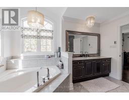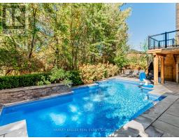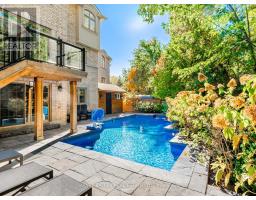 Magnificent one-of-a-kind family home nestled on one of the most sought-after streets in the prestigious Valleys of Thornhill community. Backing onto a tranquil ravine, this designer-decorated residence showcases a stunning saltwater inground pool with a water feature, built-in BBQ, and multiple lounge, seating, and dining areas across an expansive 80-ft-wide backyard oasis. The sun-filled interior boasts 9' main floor ceilings, hardwood floors, pot lights, crown moulding, and elegant upgraded fixtures throughout. Perfect for entertaining, the home offers spacious living and dining areas, a cozy family room, and a gourmet chef's kitchen featuring a butler's pantry, oversized island, Corian counters, tiled backsplash, and top-of-the-line built-in stainless-steel appliances. The large breakfast area walks out to a deck overlooking the private treed backyard. Enjoy convenient garage access through the laundry/mudroom. The luxurious primary retreat features a 5-piece ensuite, walk-in closet, and an adjoining home office or sitting room. Three additional bedrooms each include walk-in closets with custom built-ins. The impressive walk-out basement offers an office, recreation and exercise areas, ample storage, and two washrooms-ideal for use after a swim. Situated close to top-rated schools, 2 community centres, parks, restaurants, shopping, and public transit, this exceptional property blends elegance, comfort, and convenience in one perfect package. (id:61594)