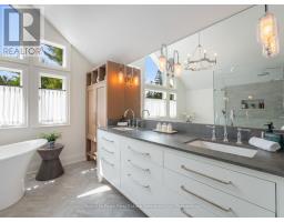 Step into timeless coastal charm at 74 West Street, a meticulously designed residence nestled in one of Bronte's most coveted enclaves. This stunning home blends relaxed lakeside elegance with upscale modern living, offering the perfect family home just steps from the lakefront, marina, and charming Bronte Village. On an 213 foot deep lot with over 5000 square feet of living space and thoughtfully curated interiors, this home is a masterclass in light, space, and natural textures. It has been completely redone with white oak flooring, shiplap accents, new kitchen, baths, windows and new interior throughout with soft neutral tones that echo the tranquility of the nearby shoreline, while expansive windows flood the home with sunlight and invite in calming lake breezes. The heart of the home is the gourmet kitchen, featuring custom cabinetry, quartz countertops, and premium appliances, ideal for both casual family meals and elegant entertaining. The open-concept living and dining areas flow seamlessly to a beautifully private landscaped backyard oasis with pool, hot tub and lush gardens perfect for summer evenings and al fresco gatherings. The primary suite is a serene retreat, complete with a spa-inspired ensuite and private balcony. Additional bedrooms are spacious and light-filled, with flexible options for home offices or guest accommodations. The lower level features an additional bedroom and full bath, family room, laundry, home office, gym and storage. Just moments from Bronte Harbour, local shops, cafes, waterfront trails, and top-rated schools, 74 West Street offers an unmatched lifestyle in one of Oakville's most picturesque settings. (id:61594)