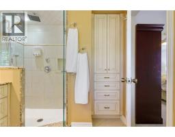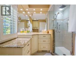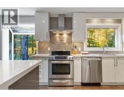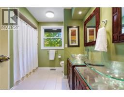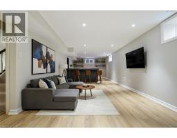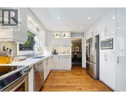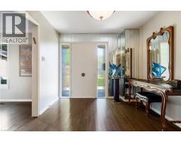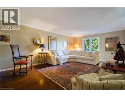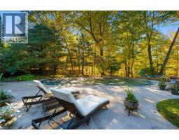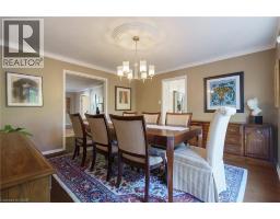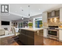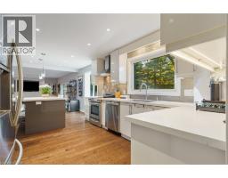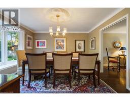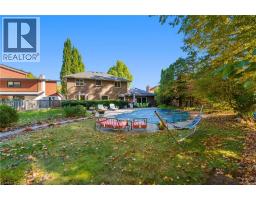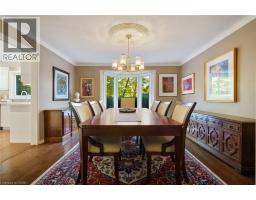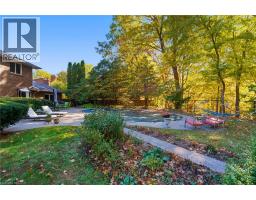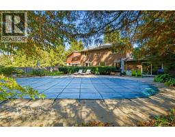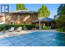 Tucked away on one of Dundas’ most desirable streets, this exceptional family home offers over 4,000 sq. ft. of beautifully finished living space backing onto a tranquil ravine setting. Perfectly positioned in a quiet, established neighbourhood known for its mature trees and strong community spirit, it combines natural beauty with timeless design and thoughtful upgrades inside and out. The curb appeal is undeniable, with meticulously landscaped gardens, an interlock walkway, and a long driveway leading to a double garage. Inside, sunlight fills the bright, open layout where rich hardwood floors and elegant finishes create an inviting atmosphere. The recently updated modern kitchen features quartz countertops, a textured backsplash, custom cabinetry with valence lighting, and a central island with a breakfast bar. It opens seamlessly to a sunken family room complete with a fireplace, built-in media wall, and walkout to the backyard oasis. This spacious main level also features a separate living and dining room, office space, powder room and inside access to the garage. Upstairs, four spacious bedrooms provide room for everyone. The serene primary suite includes a walk-in closet and spa-inspired 3-piece ensuite with heated floors and a glass shower, while the 5-piece main bath with double sinks ensures family convenience. California shutters throughout add both sophistication and privacy. The fully finished lower level extends the home’s versatility with a large recreation room, wet bar, 2-piece bath (with potential to add a shower), and an additional room ideal for an office or gym. A walk-up leads to the private, fully fenced backyard featuring an in-ground pool, aggregate patio, cabana, and green space for children or pets to play. With peaceful ravine views, accessible walking trails from the back yard, and a setting that blends luxury with nature, this is more than a home—it’s a retreat your family will cherish for years to come. (Some photos virtually staged.) (id:61594)