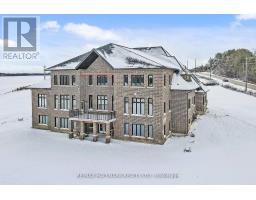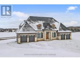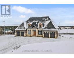 Opportunity knocks! Why not take advantage of this extraordinary, custom-built estate-like home offering over 7,000 sq ft of luxury craftsmanship, set gracefully upon 3 acres. The property boasts two road frontages and a private drive leading to dual double-car garages. Designed to capture stunning panoramic north views, the main floor features a spacious living room, elegant dining room with servery, and a gourmet chef's kitchen with premium finishes, a large eat-in area, and a walkout to a north-facing balcony. Off the kitchen, a beautiful northeast-facing sunroom provides the perfect spot to enjoy peaceful morning sunrises. Enhancing the home's functionality are a convenient secondary spice kitchen, two mudrooms, a full laundry room, and a lavish main-floor primary suite-complete with sitting area, walk-in closet, and luxurious 5-piece ensuite.The second level offers four generous bedrooms, each with its own private ensuite bath, including a secondary primary suite ideal for extended family or guests. A grand entertainment room with a vaulted ceiling anchors the upper level, creating an impressive gathering space. The home showcases flat ceilings, pot lights throughout, detailed mouldings, and a striking wrought-iron staircase that sets the tone for its refined elegance.The walkout basement, left unfinished, awaits your personal vision and offers tremendous future potential with direct access to the backyard. This exceptional residence blends thoughtful design, luxury finishes, and breathtaking views. A rare opportunity to own a truly remarkable custom home unlike any other. (id:61594)