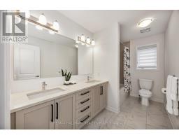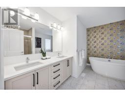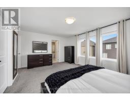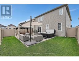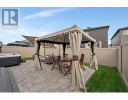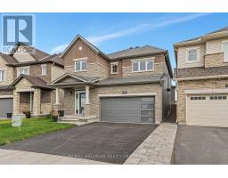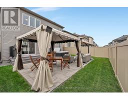Nestled in the beautiful community of Half Moon Bay, this tastefully updated single-family home features a striking brick and stone façade and a spacious, flowing interior layout perfect for modern family living. From the moment you step inside, you will appreciate the thoughtful blend of function and style, with rich hardwood flooring throughout, crisp white walls and doors, and elegant black accents that deliver a stunning, contemporary feel. The main floor showcases an inviting formal dining room with a dramatic dark ceiling and a welcoming gas fireplace, along with a bright, functional eat-in kitchen featuring white cabinetry (paint swatch color is Hakuna Matata), Bosch stainless steel appliances, stunning quartz countertops, and access to a low-maintenance private yard. Touches of designer wallpaper and modern light fixtures add the perfect layer of sophistication. Upstairs, a generous primary suite offers a spacious walk-in closet and spa-inspired ensuite with a soaker tub, separate shower, and double vanity. Three additional bedrooms, a second full bathroom, and a stylish second-floor laundry room provide comfort and convenience for busy households. A loft-inspired landing adds flexible space for a reading nook or casual sitting area. An insulated and heated double garage, with insulated door, connects with a practical mudroom entry. The lower level features a bright unfinished space with epoxy flooring and large windows, providing clean, flexible space for storage, hobbies, play, and future design. The backyard is a private retreat with PVC decking and fencing, leading to a large stone patio and 10x10 gazebo, ideal for outdoor dining, relaxing, or entertaining. Located in a vibrant, family-friendly community close to parks, schools, shopping, transit and easy access to Highway 417. (id:61594)