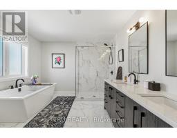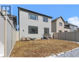 Welcome to this beautifully upgraded 4-bedroom model by Valecraft Homes, ideally located in the heart of Stittsville-directly across from Ray McCaffrey Park. Combining modern luxury with thoughtful, high-end upgrades, this home offers exceptional comfort and everyday functionality. Step inside to a bright, well-designed layout featuring rich hardwood flooring, elegant tile, and upgraded lighting throughout-creating a warm and sophisticated atmosphere. The spacious living and dining areas are perfect for both entertaining and family living. At the heart of the home, the chef-inspired kitchen showcases timeless finishes, a large island with breakfast bar, and a full suite of premium LG Café appliances, delivering both style and performance. Upstairs, you'll find four generously sized bedrooms, each outfitted with custom Hunter Douglas blinds, including blackout and light-filtering options for ultimate comfort and privacy. The primary suite offers a serene retreat with a spa-like ensuite featuring a freestanding soaker tub, glass walk-in shower, and upgraded mirrors and lighting. The fully finished basement is a standout feature, offering impressive 8'6" ceiling height and a full bathroom-creating an elevated lower-level living space ideal for entertaining, guests, or a private family retreat. Step outside to enjoy a fully fenced vinyl backyard, perfect for kids, pets, and summer gatherings. The home also features a professionally installed Gemstone permanent exterior lighting system by Avalan, allowing for customizable, year-round lighting-including holidays and special occasions. Additional highlights include Level 2 EV charger wiring in the garage, adding convenience for modern living. Located just minutes from top-rated schools, shopping, parks, and everyday amenities, this home offers the perfect balance of lifestyle and location. A true turnkey opportunity loaded with premium upgrades - book your showing today. (id:61594)