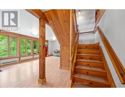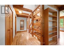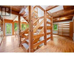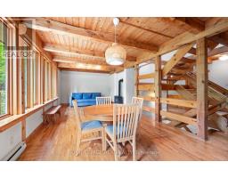 Amazing value for this private setting of 25 acres in south central Mulmur. Paved road access to a winding lane through the hardwood forest, featuring a mixed bush, rolling topography, large pond, trails and secluded homestead site. Built in 1982, this original and rustic home welcomes you as weekend retreaters or as a full time rural residence for you and your family. The home is a quaint 1 1/2 storey structure with interior timbers, open concept kitchen, dining & living area, propane fireplace and open staircase to upper level bedrooms. Enjoy multiple walkouts from the main level, as well as a wrap around deck and rear patio. There is a bright, walkout basement with 4th bedroom, family room with woodstove and 4 piece bathroom including cedar sauna, plus cold cellar, laundry room & work shop. That's not all, there is the detached 20' x 30' garage with finished upper loft/studio, accessed by interior garage staircase or separate entrance at the rear. This heated loft offers a large open space perfect for home office or occupation, artisan, hobbyist or guest overflow. This is a great opportunity with lots of possibilities to bring your home ownership dreams to life - see floor plans attached and aerial views of this spectacular parcel of land. The property is also currently under a Managed Forest Plan resulting in lower property taxes. (id:61594)