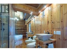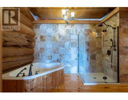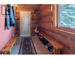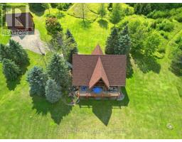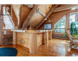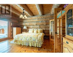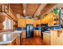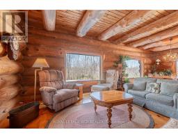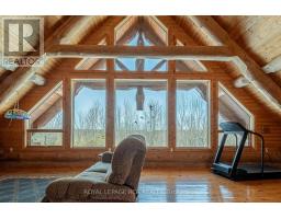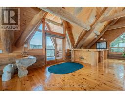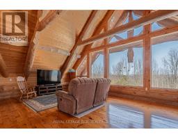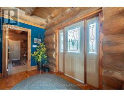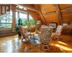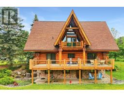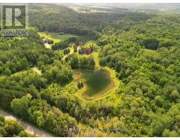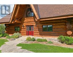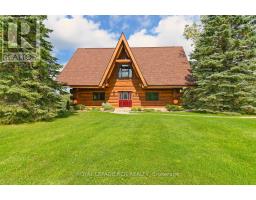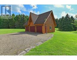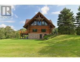 Maplelands - One of a kind, spectacular Scandinavian scribed log home in park like setting on 34 acres with 2 ponds in Mulmur.  Spectacular log home in a private, serene setting with views of the Mulmur hills,  only 75 minutes from Toronto's airport.  This home combines quality and breathtaking views to the north, south, east and west. The 3600 square foot home on three levels was built by artist Laura Berry who created a painting of it called Peaceful Reflections. The main floor living area features a beautiful pine kitchen with Caesar stone countertops, wide pine plank floors, mud room, guest bathroom, a primary suite with custom-made four-piece ensuite, an exquisite floor to ceiling custom made armoire and a walk out to a massive deck overlooking a spring fed pond. A log staircase leads to the second level great room that features cathedral ceilings, a massive log bar, wide plank pine floors, huge windows with views in all directions as well as a walk out to an upper deck. The lower level has two walkouts and has the potential to be an in-law suite. Every detail of this home exudes craftsmanship and sophistication including three handcrafted pendulums with a carved-in maple leaf in each on both sides of the house and over the three-car garage. Additional features include a gazebo by the pond, a fixed and floating dock, and  UV water system. Enjoy unmatched privacy and spectacular sunrise and sunset views in your sanctuary of peace and tranquility. This property is ideal as a full-time residence or a serene weekend retreat. Located just a short drive from the Mansfield Ski Club and about 40 minutes to Blue Mountain and Collingwood. (id:61594)