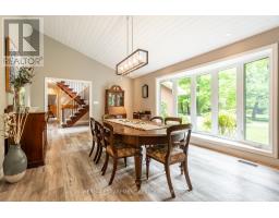 A Private Slice of Paradise in Milton Perfect for Growing or Multi-Generational Families! Welcome to your own serene retreat just 17 km from Burlington. Tucked away on a beautifully landscaped, fully fenced 0.65-acre lot, this custom 3,200 sq. ft. home combines peaceful country living with the convenience of nearby city amenities ideal for families who value space, privacy, and versatility. Step inside to a chef-inspired kitchen designed to impress, featuring soaring vaulted ceilings, elegant quartz countertops, an expansive 8-foot island, soft-close cabinetry, and premium Jenn-Air appliances. The open-concept layout flows seamlessly into a sun-drenched dining area with a stunning wall of windows showcasing lush greenery, and a spacious living room with a cozy fireplace and vaulted ceilings perfect for entertaining or unwinding in comfort. The main level offers three generous bedrooms and two full bathrooms, including a luxurious primary suite with vaulted ceilings, three closets, and a beautifully updated spa-like ensuite. Upstairs, you'll find a private retreat-style second primary suite with its own 2-piece bath and flexible living or office space ideal for guests, teens, or working from home. The lower level features a large family room with a fireplace and a dedicated workshop a dream space for hobbyists or DIY enthusiasts. At the opposite end of the home, a separate entrance leads to a full in-law suite through a practical mudroom, providing exceptional flexibility for extended family or long-term guests. Enjoy peace of mind year-round with a backup generator that ensures continued comfort and security. This rare offering delivers the best of both worlds: tranquil living in a park-like setting, with all the essentials just minutes away. (id:61594)