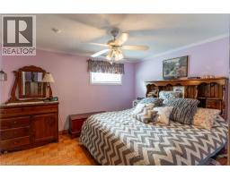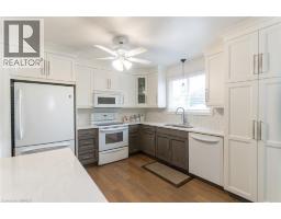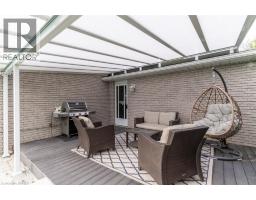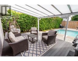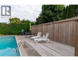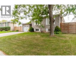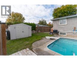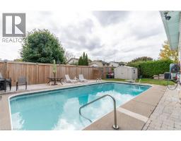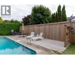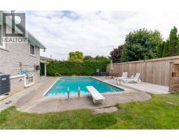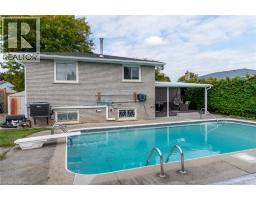 North End all angelstone brick raised ranch style family home with wide 57 ft frontage lot & heated inground pool for summer fun steps to schools! Featuring open concept newer stunning eat-in kitchen, dining room & living room with hardwood floors- perfect for entertaining! 2+1 bedrooms, 2 full baths, could have 4th bedroom on lower level if needed, finished rec room with gas fireplace and built in book shelves with desk, nice covered sun screen deck that blocks UV sunlight, newer windows with 2 bay windows in living room & dining room, newer reshingled roof, furnace, central air, newer insulation, all TV's stay, most furniture is also negotiable, all appliances included, double paved driveway, attached garage with auto opener, security system, fenced yard. Close to shopping and easy Hwy 403 access just off the Wayne Gretzky Parkway. Room to park RV, trailer or boat on side of home with gravel base. Immediate possession. A Must See! (id:61594)