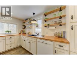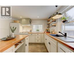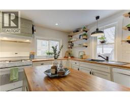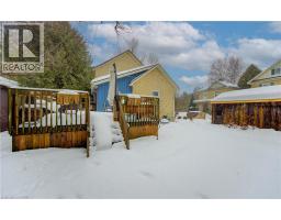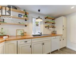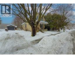 This elegant detached and carpet free home with no rear neighbours in lovely New Hamburg seamlessly blends timeless charm with modern style. Tucked away at the edge of a cul-de-sac overlooking the Nith River, this quiet, family friendly neighbourhood adorned with beautiful century homes and mature trees is only a short drive to Kitchener-Waterloo and Stratford, while being mere steps from historic downtown New Hamburg and its beloved amenities including restaurants, shops and beautiful parks. The classic curb appeal punctuated by a quintessential front porch speaks for itself, and once inside you’ll find a bright foyer that beckons Welcome Home. Next up is the large open concept living/dining room with a gas fireplace, offering plenty of space for entertaining and relaxing. The updated kitchen features white cabinetry, butcher block counters and island, as well as stylish shiplap accents. There’s also a mudroom with convenient main-floor laundry, as well as access to the large backyard deck via sliders. Other tasteful updates over the years include laminate flooring, modern light fixtures and pot lights. Upstairs you’ll find three bedrooms, including the spacious primary, more modern laminate flooring, and an updated 4-piece bathroom. The unspoiled basement offers a flexible rec-room space, as well as ample storage. You’ll adore spending time in the sizable and private backyard, with plenty of greenspace for kids and the family dog. There’s also a handy workshop for all of you hobbyists out there, and as a special bonus, the property also boasts three sugar maple trees. If you’re dreaming of getting out of the city without having to go too far and looking for a wonderful detached freehold home to call your own, don’t sleep on 76 Grace. (id:61594)
