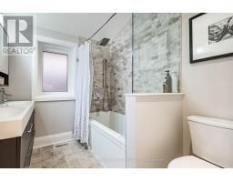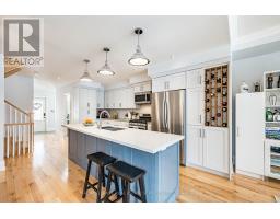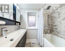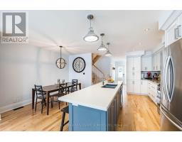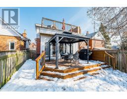 This modern, trendy & impeccably-renovated, 3+1-bedroom, 3-bathroom home has undergone extensive renovations including a large addition at the back of the home. Renovated from top to bottom, inside and out. Turn-key and move-in ready, it blends modern luxury with original charm. The covered front porch with tongue-and-groove ceiling is the perfect spot to relax and enjoy a chat with the neighbours! Designed for entertaining, the stunning chef's kitchen features loads of off-white cabinetry, a 10-foot island, subway tile backsplash, mixed-material countertops and large undermount sink with an adjoining dining area. The family-size living room showcases an impressive gas fireplace, a wall of windows and double-door walkout to the sunny west-facing backyard. Perfect for outdoor entertaining; the backyard enjoys a large deck, natural gas BBQ line, and covered pergola. The freshly painted main floor also enjoys a front foyer with double coat closet, a handy 2-piece powder room and a versatile 3rd bedroom. Currently a guest bedroom/den, it would also make a fabulous, bright & sunny home office. Upstairs are two spacious, sun-filled bedrooms. The sizable primary bedroom retreat opens to a remarkable rooftop terrace - an exceptional space to relax, entertain, or unwind. The modern 5-piece bath has heated floors, double sinks and vanity with ample storage. The fully finished lower-level enjoys a cozy rec room, 4th bedroom/home office, stylish 4-piece bath and 7-foot-high ceilings. Plus, finished laundry area, cold cellar, and separate side entrance. Updated mechanicals: 100-amp service, sump pump, updated plumbing and wiring, circuit breaker panel, modern windows & doors. Steps to the Lake, lakeside parks, the Waterfront Trail. schools, pools, shopping & public transit. And, it's just a short commute downtown. Dreaming of living near the lake? Dream no longer! Now you too can enjoy the excitement of Life-by-the-Lake! (id:61594)