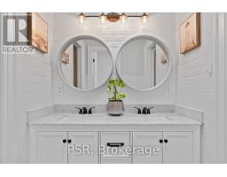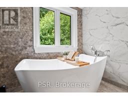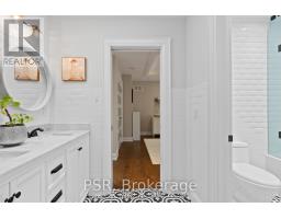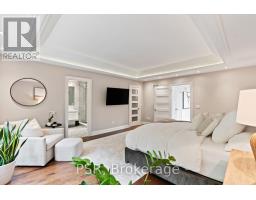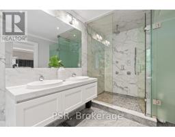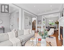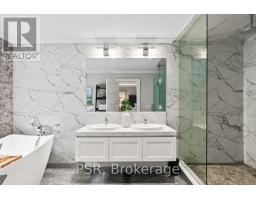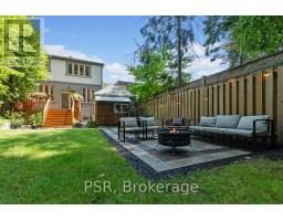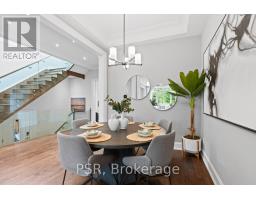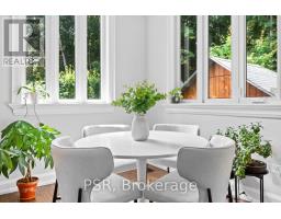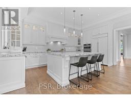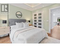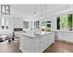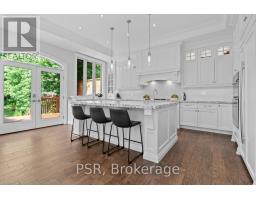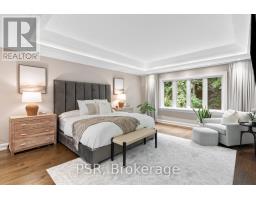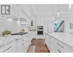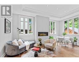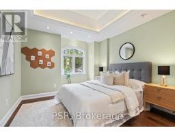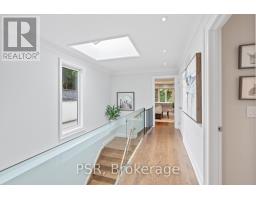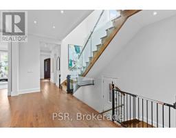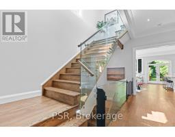 This stately Swansea residence, gracing an impressive 190ft-deep lot, offering nearly 4000 square ft of luxurious living space, is a masterpiece of modern sophistication and precision craftsmanship. In one of Toronto's most sought-after communities, the vibrant gardens lead to an exquisite granite facade, accentuated by a warm and commanding red-oak door beneath an archway. Step inside, and experience the tranquility of triple-glazed windows, the skylight illuminating the stairwell, the sleek glass railings, the solid oak and porcelain floors, the meticulous millwork, and the recessed ceilings. The main floor's soaring 10ft-ceilings and intimate fireplace enhance the spacious, well-defined living and dining rooms. The resplendent kitchen is a culinary haven, featuring quartz countertops, a grand centre island, an origami-inspired backsplash, a 6-burner gas range, and a fireplace warming the kitchen-side dinette and inglenook. Custom 8ft pocket doors transform the kitchen into a private drawing room, adding an elegance to evening gatherings. Upstairs, every bedroom boasts 9ft ceilings, and every bathroom is appointed with contemporary flair. The palatial primary suite is a serene retreat, complete with a customized walk-in closet with a skylight, micro-forest views, and a lavish 5-piece ensuite designed to pamper and impress. Downstairs offers 8ft ceilings, in-floor heating, a separate entrance, a stylish 4-piece bath, two expansive rec rooms with one designed for effortless division for more rooms. A roughed-in kitchen ready to accommodate caterers, a nanny, or visiting friends and family. The rear grounds are a true oasis, with towering canopies, open skies, playful chipmunks, and blue jay songs. Enjoy the gas-line barbecue on the deck, terrace lounging, and fireside dining. This urban sanctuary is surrounded by iconic parks, serene waterside trails, Bloor West Village, the Cheese Boutique and the prestigious Swansea Public School and Ursula Franklin Academy. (id:61594)