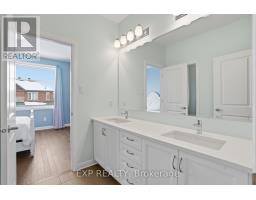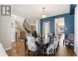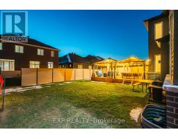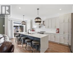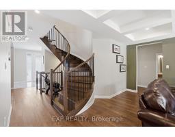 This exceptional Elderberry II model offers approximately 3218 sq ft above grade, plus an additional 1,100 sq ft in the finished basement, with 4 bedrooms, a den, and 5 bathrooms. From the dramatic hardwood spiral staircase and vaulted ceilings to the rare walkthrough kitchen layout, this home offers a beautiful blend of elegance and functionality. With over $200,000 in upgrades, a freshly painted interior, and thoughtfully selected finishes throughout, every detail has been carefully curated. The main level features 9-foot ceilings, a gracious front sitting room, a formal dining area, and a chef's kitchen with top-tier upgrades including a striking waterfall island, oversized sinks, extended cabinetry, custom garbage and recycling drawers, and a walk-in pantry with servery. The kitchen opens to a bright living room with a stunning coffered ceiling. A main-level office or den and an oversized mudroom with a walk-in closet add flexibility and function. Upstairs, you'll find 9-foot ceilings and walk-in closets in every bedroom. The spacious primary suite includes two walk-in closets and a luxurious 5-piece ensuite with a freestanding soaker tub, separate shower, and double sinks. A second oversized bedroom has its own 3-piece ensuite, while the remaining two bedrooms share a Jack-and-Jill 4-piece bath. A large laundry room with sink and cabinet storage adds everyday convenience. The fully finished basement, completed in 2025, adds approximately 1,100 sq ft of living space with pot lights, a wet bar with sink, a full bathroom, and excellent storage. Outside, enjoy a fenced backyard with a gazebo, an oversized 16' x 24' deck, a fully interlocked front yard, double-car garage, 4-car driveway, and exterior lighting on three sides. (id:61594)