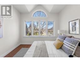 Backing onto Oriole Park, this elegant detached residence in Chaplin Estates offers a rare sense of calm, privacy, and space in one of midtown's most established family neighbourhoods. Set on a beautifully landscaped corner lot, the home feels quietly distinguished from the moment you arrive, with mature gardens framing every approach and a fenced backyard that opens to a peaceful private patio. Inside, the scale is immediately welcoming. A generous foyer with double doors, ample storage, and a discreet powder room introduces a main floor designed for both entertaining and comfortable daily life. To one side, a beautifully appointed sitting room with a bay window, fireplace, and built-in bookshelves offers a refined retreat - equally suited to a formal living room, library, or private home office. Warm oak floors carry throughout the main level, adding richness and continuity. The eat-in kitchen is bright and inviting, with upgraded stainless steel appliances and abundant natural light. It flows into the dining room, where sliding doors open to the garden. The dining room overlooks a stunning sunken family room centered around a statement stone fireplace and with expansive bay windows overlooking the backyard. Upstairs, the primary suite enjoys beautiful views over the park, a spacious closet, a spa-like ensuite with soaker tub, and a private south-facing balcony. Two additional bedrooms with dedicated double closets and a skylit family bath complete the second floor. The finished lower level adds more flexibility, offering a bright recreation room with a second stone fireplace and custom built-ins, a fourth bedroom, a powder room, and a discreet ventilated wine cellar. With detached garage parking, additional driveway space, and easy access to Oriole Park, Davisville Subway Station, the Kay Gardner Beltline Trail, top schools, and the restaurants & shops along Yonge St, this home offers both everyday ease and lasting elegance in an established Toronto enclave. (id:61594)